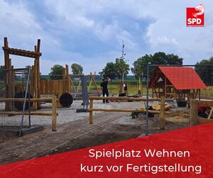 Bald ist es soweit: Der neue Spielplatz in Wehnen, Standort östlich Ahornstraße/ gegenüber der Einmündung Fliederstraße wird fertigstellt.